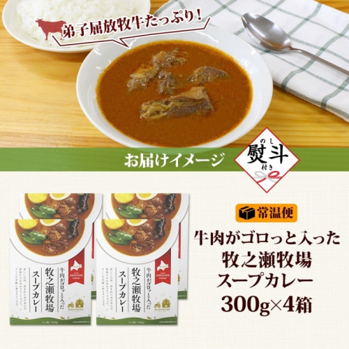 3026. 無地熨斗 ビーフ スープカレー 300g 4袋 カレー ビーフカレー スープ 牛 牛肉 放牧牛 牧場 レトルトカレー レトルト食品 レトルト 湯煎 レンジ 牧之瀬牧場 送料無料 北海道 弟子屈町
