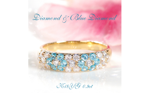 指輪 K18YG イエローゴールド ダイヤモンド ブルーダイヤ 0.9ct レディース リング フラワー 花 パヴェ 月甲丸【f236-k18yg-bd】 ※6号 ALPAZ098-6