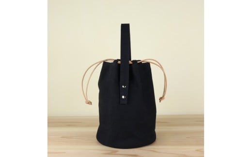 - バッグ 丸底の巾着バッグ ブラック L [アトリエSASSA 富山県 朝日町 34310190] 丸底 巾着 鞄 かばん カバン 帆布 革 おしゃれ 手作り シンプル レザー