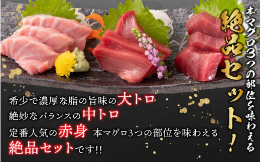 【最新鋭の冷凍技術 刺身用】本まぐろセット 大トロ 300g + 中トロ 300g + 赤身 300g(すべて柵どり) [D-107001]