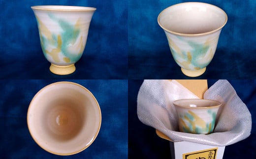 清水筑山作「高取焼 三彩麦酒杯(化粧箱入り)」 陶器 一点もの 手作り