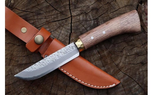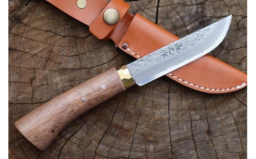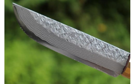 - 土佐渓流ナイフ105 真鍮丸輪 槌目磨 ダマスカス15層青紙2号鋼 | ナイフ キャンプ アウトドア 打刃物 土佐 鉈 剣鉈 なた 職人 山林 狩猟 熊 刃物 薪割り ハンドメイド 釣り 伝統 工芸 高知県 南国市