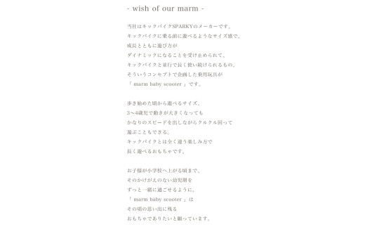 ベビースクーター marm baby scooter 1台 financier 1歳 2歳 誕生日プレゼント 静音キャスター 360度全方位走行 乗用玩具 乗用おもちゃ 玩具 おもちゃ ビジーカー スクーター ベビー 幼児 赤ちゃん キッズ こども 子ども 子供 子供用 人気 おすすめ プレゼント ギフト 贈答 贈り物 お祝い 誕生日 バースデー バースデープレゼント 京都 八幡 サーチライト