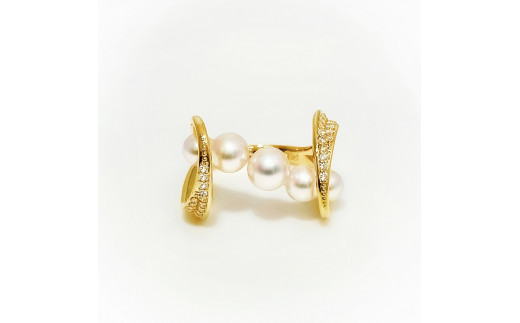- 【サイズ:9.5号】〈 甲府ジュエリー 〉K18YG アコヤ真珠 ダイヤモンド リング N78 K05052-H