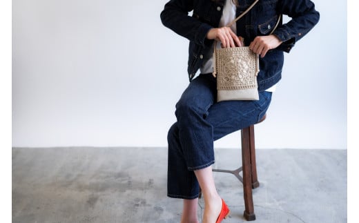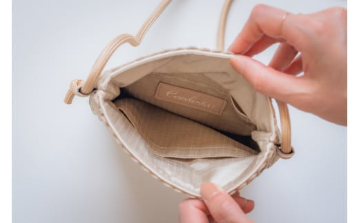 - サコッシュ cooderia ( ベージュ ) コード刺繍 レディース 日本製 | ショルダーバッグ ポシェット 斜め掛け 小さめ 軽量 縦型 コンパクト おしゃれ シンプル 新潟県 五泉市 有限会社田中刺繍