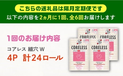 - 【北海道・沖縄・離島用】【隔月配送 全6回定期便】【細穴タイプ】 トイレットペーパー ダブル 24ロール 長巻き 65m (6ロール×4パック) 宅配 コアレス 《豊前市》【大分製紙】 日用品 消耗品 常備品 大容量 [VAA148]