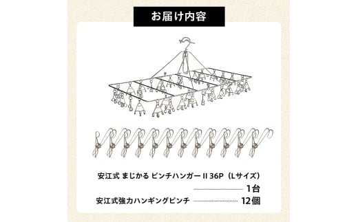 - 「安江式 まじかる ピンチハンガーⅡ 36P(Lサイズ)」1台と「安江式 強力 ハンギング ピンチ」12個のセット 【岐阜県 日用品 生活雑貨 洗濯物 ステンレス アイデア 便利 簡単 耐久性 洗濯 国産 シンプル ピンチ 折りたたみ 長持ち 超軽量 】