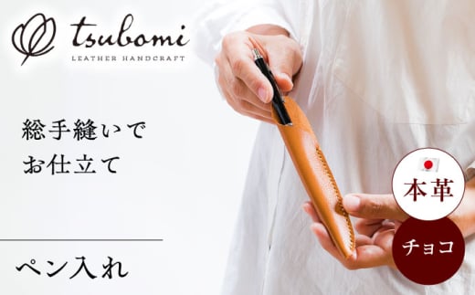 - 総手縫いで仕立てた 本革のペン入れ (キャメル)<完全受注生産> レザー 革製品 島根県雲南市/革工房 蕾 [AIBF019]
