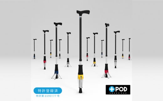 立てられる杖「クロスポッド」(レッド) 立つ杖 便利 デザイン賞 安定 軽量 レッド 贈答 贈り物 調整可能 ステッキ R11002_1