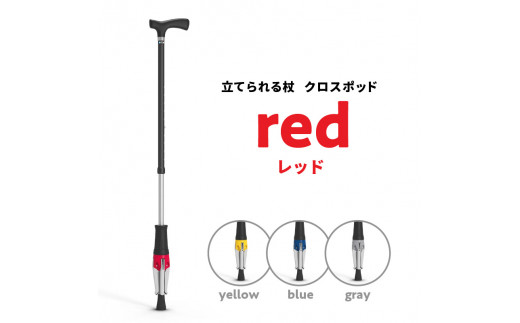 - 立てられる杖「クロスポッド」(レッド) 立つ杖 便利 デザイン賞 安定 軽量 レッド 贈答 贈り物 調整可能 ステッキ R11002_1