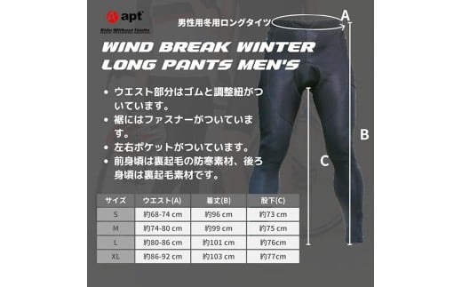 apt' ウインドブレークタイツ 3Dパッド 冬用 【Mサイズ】サイクルパンツ 冬用レーサーパンツ サイクルウェア 自転車 バイク サイクリング ランバイク WB 奈良県 奈良市 なら 19-017