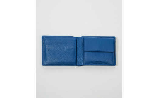 - キプリス本革製二つ折り小銭入れ付財布 カラー:ブルー【革小物 革製品 ソフトシュリンクレザー 牛革 しっとり シーズンレス 職人 財布】