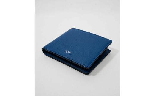 キプリス本革製二つ折り小銭入れ付財布 カラー:ブルー【革小物 革製品 ソフトシュリンクレザー 牛革 しっとり シーズンレス 職人 財布】