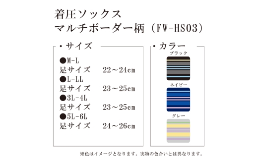 - 【フラワーレッグスシリーズ】着圧ソックス マルチボーダー柄 FW-HS03 M グレー