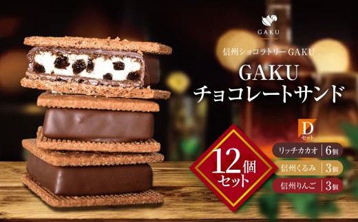 【信州ショコラトリーGAKU】GAKUチョコレートサンド12個セット(リッチカカオ6個・信州くるみ3個・信州りんご3個) │ ふるさと納税 信州 長野県 松本市 お菓子 おかし 甘い チョコ チョコレート サンド カカオ スイーツ デザート