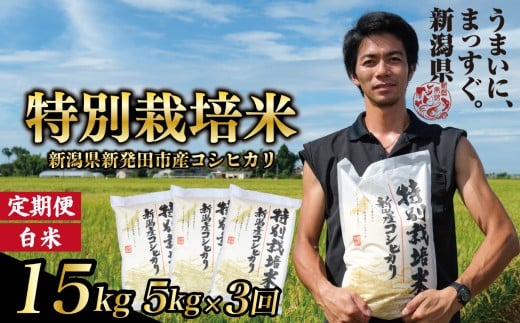 - 【定期便】コシヒカリ 白米 5kg 3ヵ月 15kg 令和7年産 特別栽培米 こしひかり 米 お米 こめ 新潟米 新潟県産 新潟産 新潟 新潟県 新発田産 新発田 新発田市 斗伸 toushin042