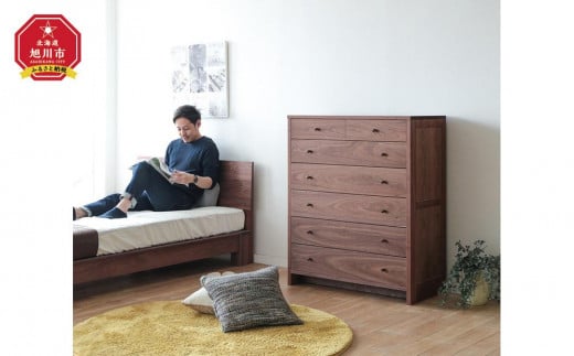- 旭川家具 山室家具製作所 プロトNo.802チェスト(6段) ウォールナット 【 国産 無垢 インテリア 木製 収納 ナチュラル キャビネット チェスト リビング ダイニング 北海道 】 _01970