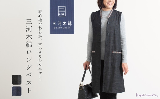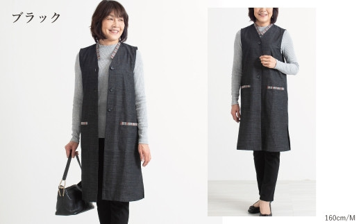 【G0671】三河木綿 ロングベスト:配送情報備考 M /ブラック