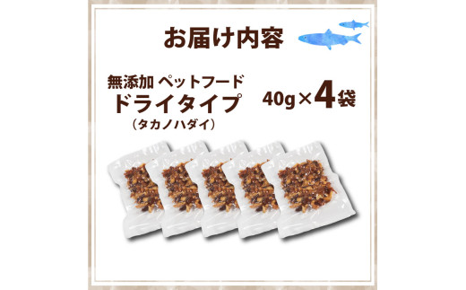 - 無添加 ペットフード ドライ 4袋 (タカノハダイ) / ペット 無添加 犬 猫 ペットフード キャットフード ドッグフード ごはん おやつ ふりかけ 手作り 詰め合わせ セット 健康 高タンパク 小型犬 中型犬 大型犬 シニア ご褒美 未利用魚 魚 SDGs 5000円 五千円 三重県 伊勢志摩 志摩市