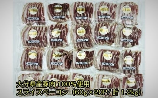 - ジューシーベーコンスライス1.2kg ベーコンスライス 小分け 肉厚 ジューシー 大分県産 豚肉 おつまみ 塩気 冷凍 ゆふいん牧場 A05048