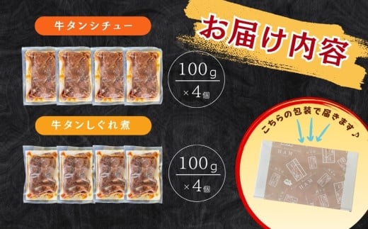 牛タン しぐれ煮 牛タンシチュー 100g×各4個 合計8個 電子レンジ レンチン 対応 牛たんシチュー 牛たん シチュー 牛たんしぐれ煮 セット 本格 レトルト 湯せん 宮城県 東松島市