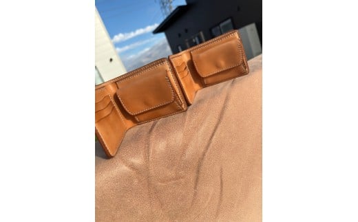 - 【25025】ハーフウォレット【mountain】【二つ折り財布】革(栃木レザー)総手縫い