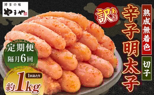 【隔月6回定期便(1・3・5・7・9・11月発送)】【訳あり】やまや 熟成無着色辛子明太子 切子1kg 計6kg 辛子明太子 明太子 めんたいこ 熟成 無着色 魚卵 海の幸 冷凍
