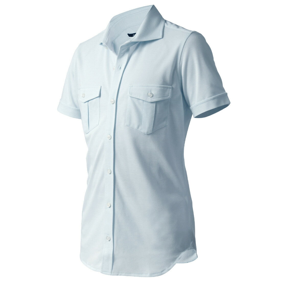 - 【ふるさと納税】DJS-003 decollouomo メンズパイロットシャツ半袖(生地/コンコルド)サックスブルー/Sサイズ