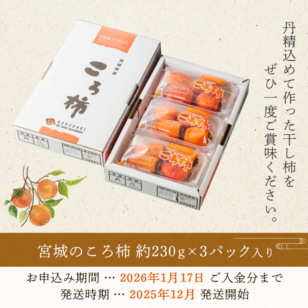 2025年12月発送開始【宮城のコロ柿 旬の味】<干し柿 約230g×3パック入り>【13008】