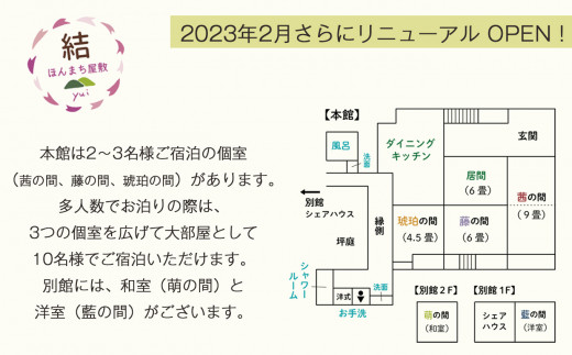- 『結ほんまち屋敷』 宿泊券(10名様まで利用可 1泊素泊まり)