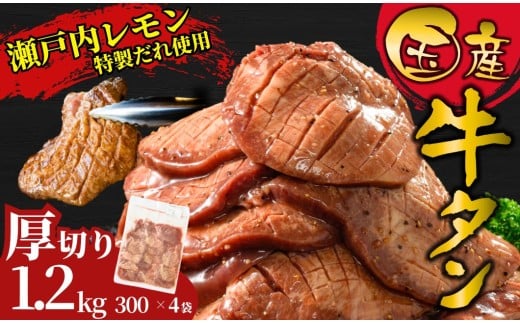 【厚切り】国産牛たん1.2kg 瀬戸内レモン塩だれ 尾野精肉店の牛タン | 厚切り 薄切り 国産牛 牛肉 牛タン 味付き 焼肉 BBQ 数量限定 真空パック 小分け 冷凍 広島県 竹原市 ※離島への配送不可