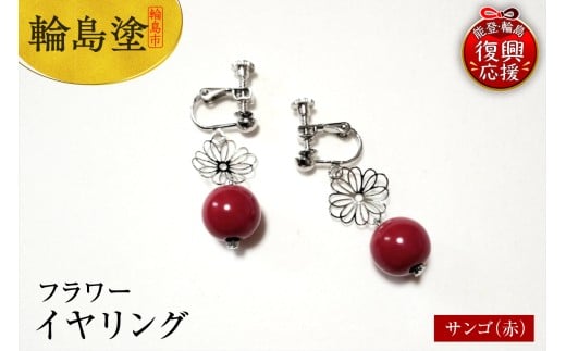 輪島うるし塗 イヤリング フラワー サンゴ(赤)