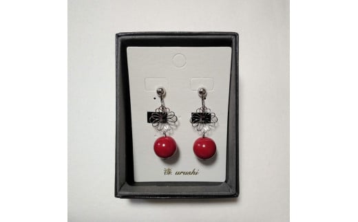 - 輪島うるし塗 イヤリング フラワー サンゴ(赤)