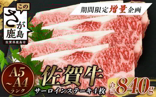 - 【期間限定増量企画】 佐賀牛 サーロインステーキ 4枚 (合計840g) A4等級以上 黒毛和牛 和牛 肉 牛肉 ステーキ a5 a4 佐賀牛 サーロイン 佐賀県 鹿島市 F-54