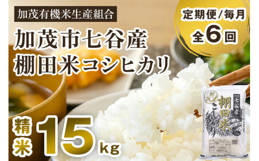 - 【令和7年産新米先行予約】【定期便6ヶ月毎月お届け】七谷産 棚田米 コシヒカリ 精米 15kg(5kg×3)《10月中旬から順次出荷》 白米 加茂有機米生産組合 新潟県 加茂市産 白米 米 お米 定期便