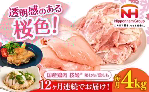 - 【全12回定期便】桜姫 鶏むね&鶏ももセット 計4kg (鶏むね・鶏もも 各2kg)《厚真町》【東日本フード株式会社】 桜姫 鶏肉 鶏 とり肉 もも肉 鶏もも むね肉 鶏むね トリ 2キロ パック 冷凍 北海道 [AXBM047]