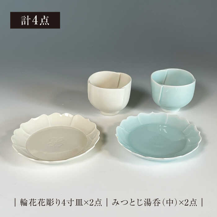 - 【ふるさと納税】【美濃焼】青白磁・白瓷 小皿・湯呑 セット【快山製陶所】食器 プレート ペア [MBG010]