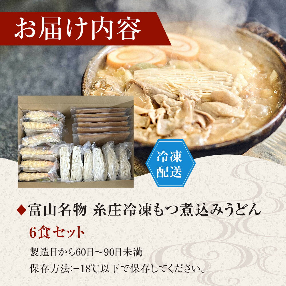 - 【ふるさと納税】富山名物糸庄冷凍もつ煮込みうどん 6食セット | 麺類 うどん 生 半生めん 食品 加工食品 肉 牛肉 もつ鍋 和風惣菜