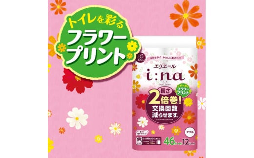 エリエール トイレットペーパー ダブル 2倍巻き 72ロール 6パック i:na イーナ フラワープリント 12R (ダブル・46m) × 6パック 日用品 消耗品 備蓄 防災 愛媛県 四国中央市