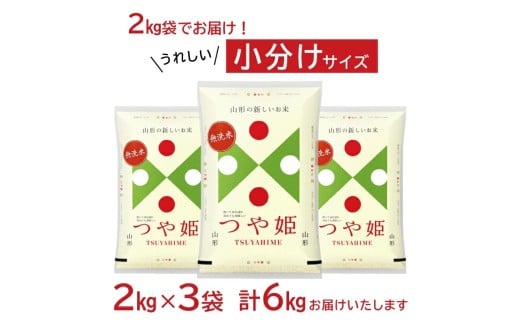 1250R07 無洗米 つや姫 2kg×3袋 計6kg(令和7年産米)