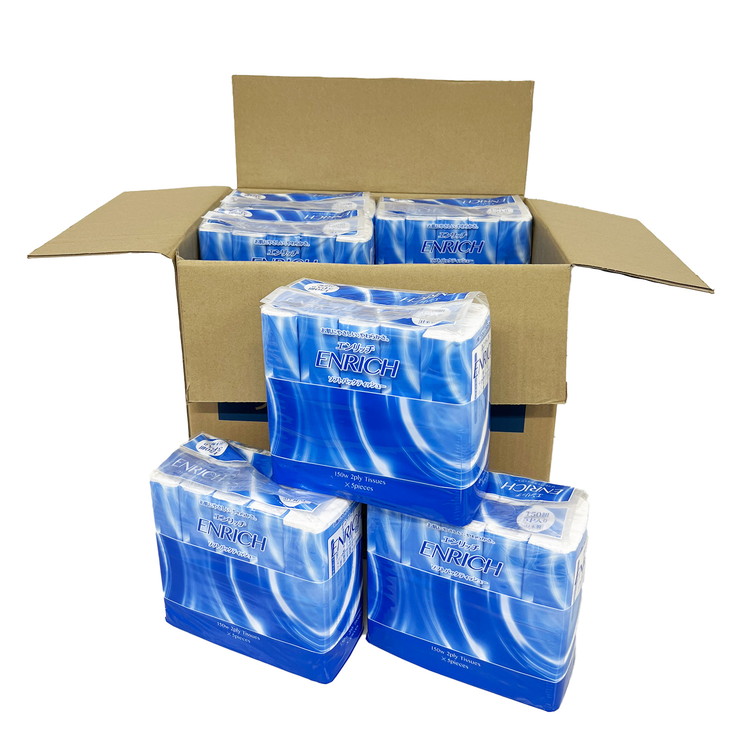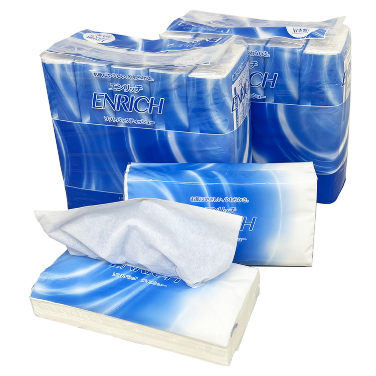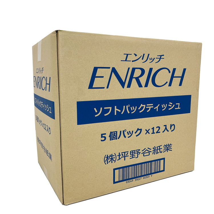 ENRICH エンリッチ ソフトパック ティッシュ 300枚(150組)5パック×12個入り 計60個【日本製】| 日用品 消耗品 まとめ買い 常備品 生活用品 ティッシュペーパー 60個