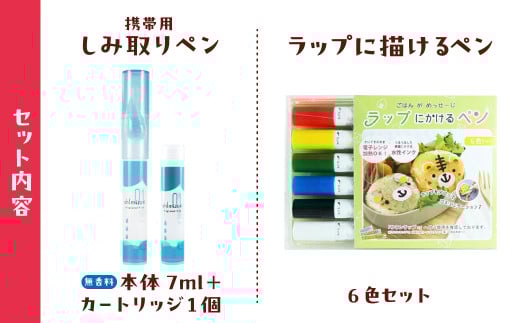 - シミとり ペン 無香料 本体/詰め替え 1セット ラップにかけるペン6色セット |シミヌキ 衣類 洋服 お気に入り 汚れ落とし ペン 携帯 汚れ落とし コーヒー キャラ弁 便利 日用品 文房具 雑貨 生活用品 便利グッズ 染み お弁当 埼玉県 久喜市