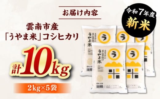 - 【2025年産新米】「うやま米」コシヒカリ 10kg(2kg×5)島根県雲南市/有限会社藤本米穀店 [AIDB019] 新米