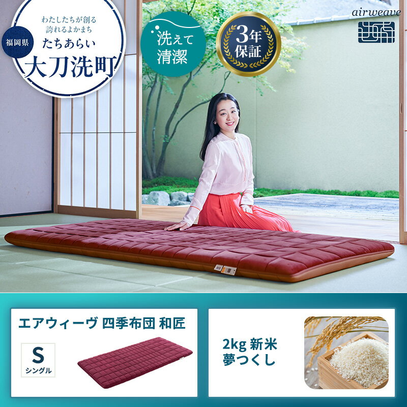 - 【ふるさと納税】敷布団 期間限定 エアウィーヴ 四季布団 シングル 和匠 & 新米 2kg 2025年産 夢つくし セット 体圧分散 三つ折り マットレス 三つ折りマットレス 敷き布団 洗える 丸洗い 寝具 エアウィーブ 米 お米 福岡県 大刀洗町 お届け:2025年10月1日~