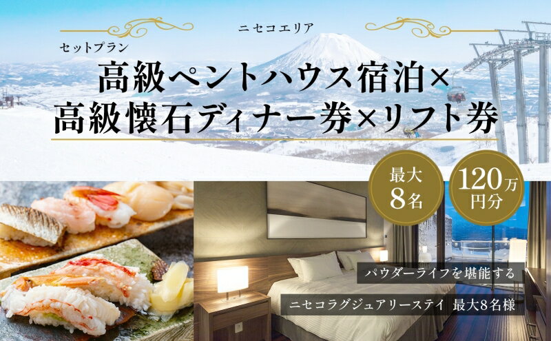 - 【ふるさと納税】【北海道ツアー】ニセコ 高級ペントハウス宿泊×蟹鮨加藤ディナー×スキーリフト券(1,200,000円分)【2泊3日】【最大8名】【12月15日-3月31日】 倶知安町 旅行券 宿泊券 旅行チケット 観光