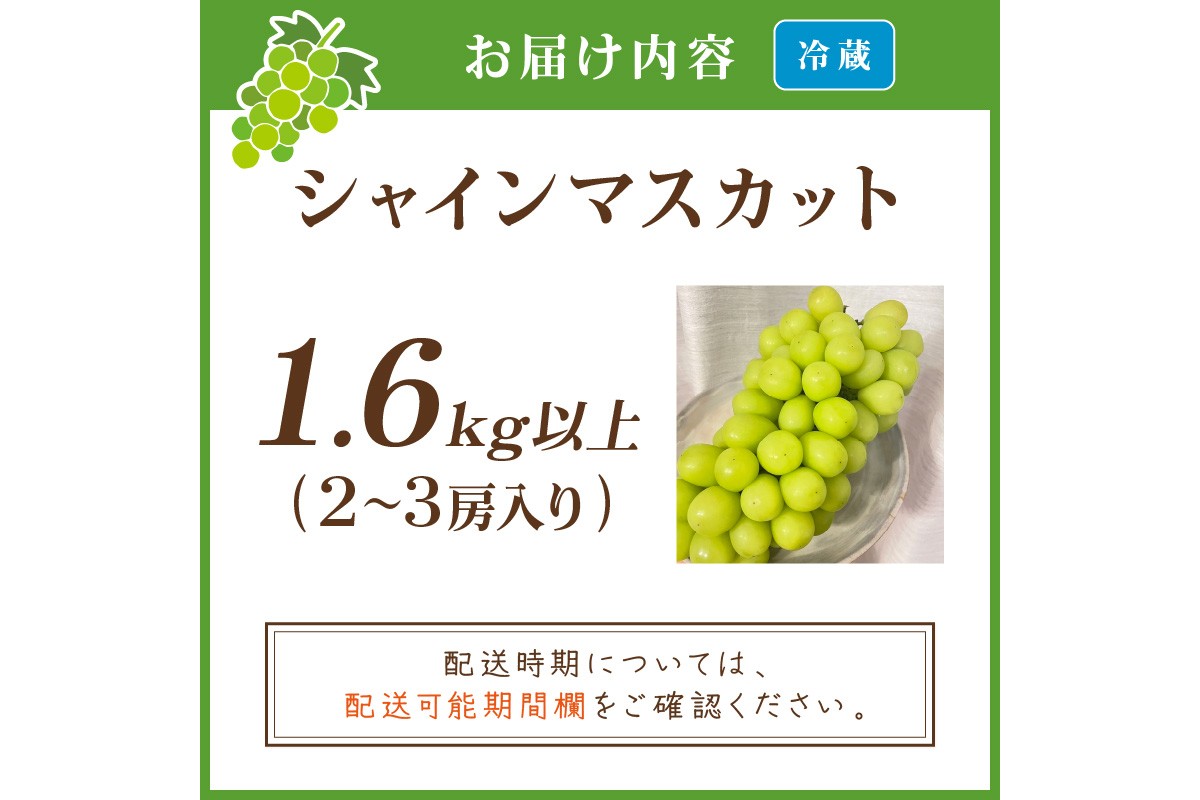 【先行予約/数量限定100】シャインマスカット 1.6kg以上(2~3房入り)(2026年9月上旬~発送) FK00018