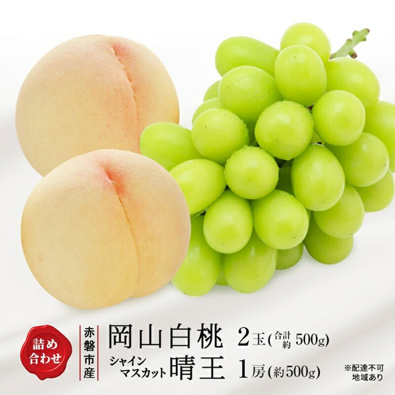 - 【ふるさと納税】桃 ぶどう 2026年 先行予約 岡山白桃 2玉 シャインマスカット 晴王 1房 詰め合わせ セット 岡山県 赤磐市産 果物 フルーツ 白桃 葡萄 お届け:2026年7月上旬~2026年8月下旬