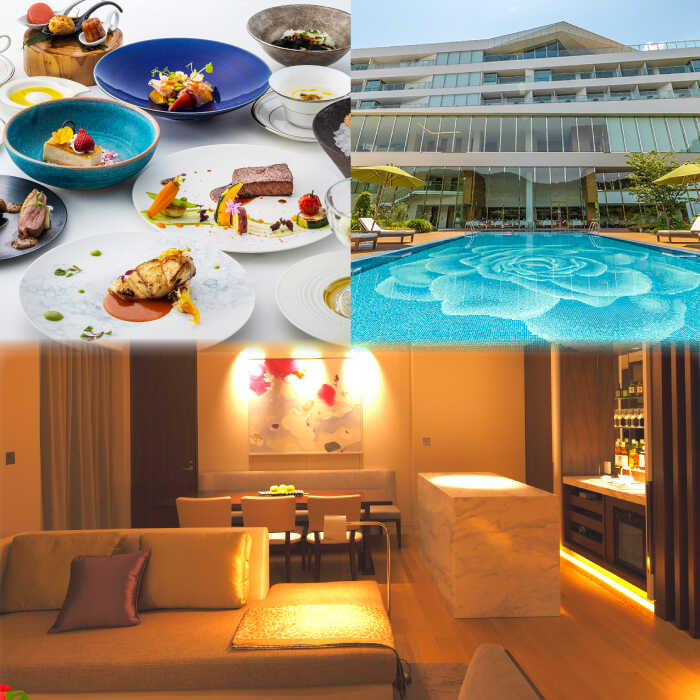 - 【ふるさと納税】【高島屋選定品】【オリーブベイホテル】 プレミア・スイートルーム 『キュイジーヌコース』 ペア宿泊券(1泊2食付き)<高島屋>[CFQ072] 長崎 西海 ホテル 高級宿 宿泊券 チケット 高島屋 記念日 贈答 ギフト