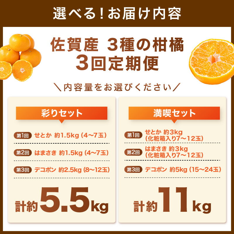 - 【ふるさと納税】佐賀産 柑橘定期便【全3回】せとか はまさき デコポン <内容量が選べる/ 彩りセット・満喫セット> 【 果物 フルーツ みかん 蜜柑 オレンジ かんきつ 不知火 麗江 ふるさと納税 フルーツ 】
