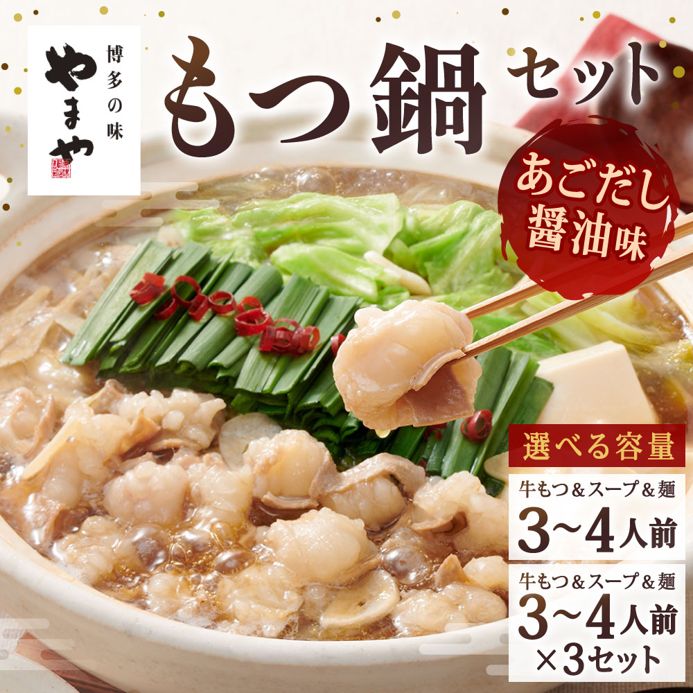 - 【ふるさと納税】やまや 博多もつ鍋セット あごだし醤油味 〈選べる〉3~4人前 / 3~4人前×3セット 国産牛小腸 濃縮スープ しょうゆ味 ちゃんぽん麺 牛ホルモン もつ鍋 ホルモン鍋 冷凍